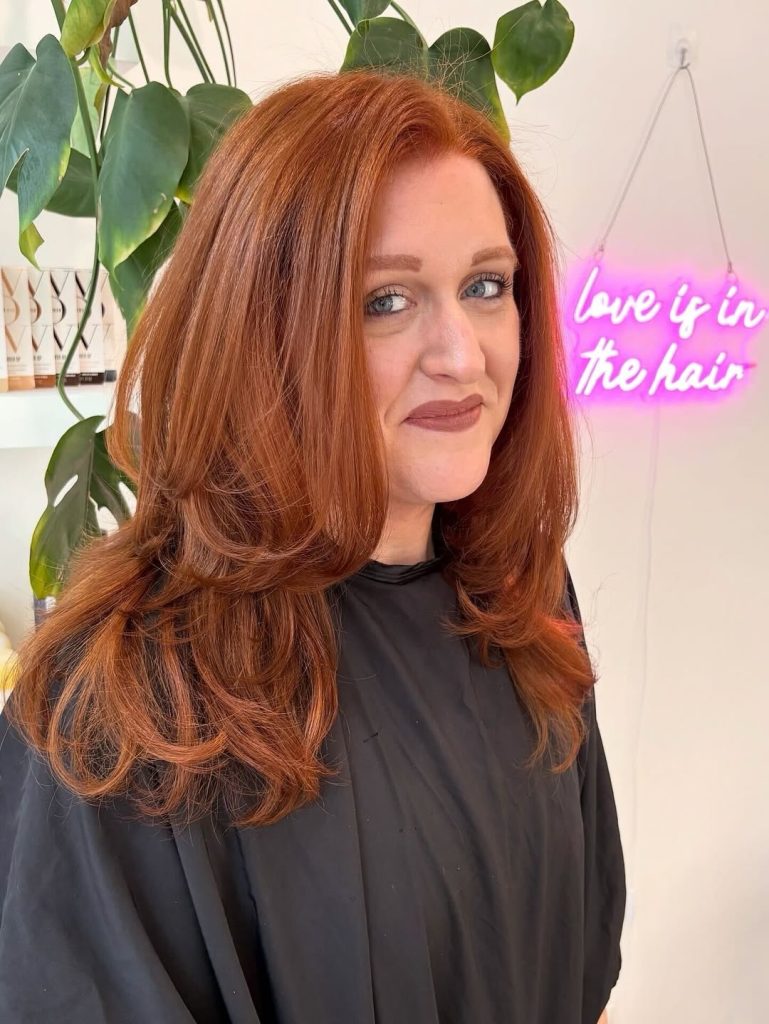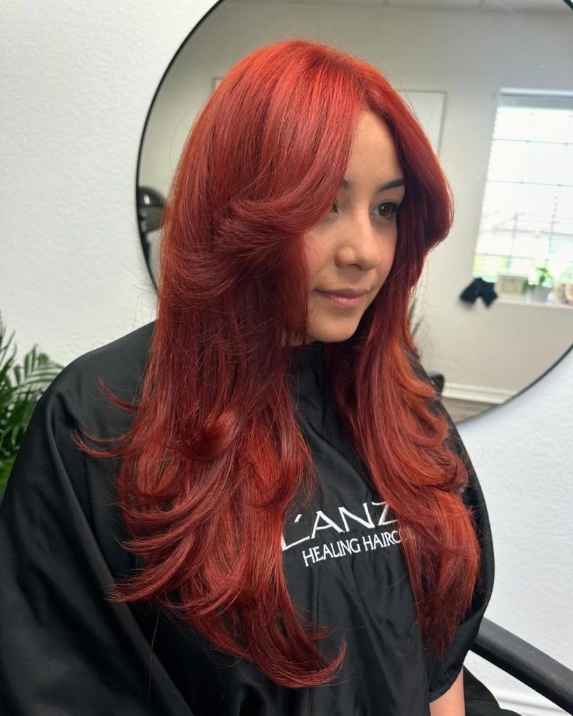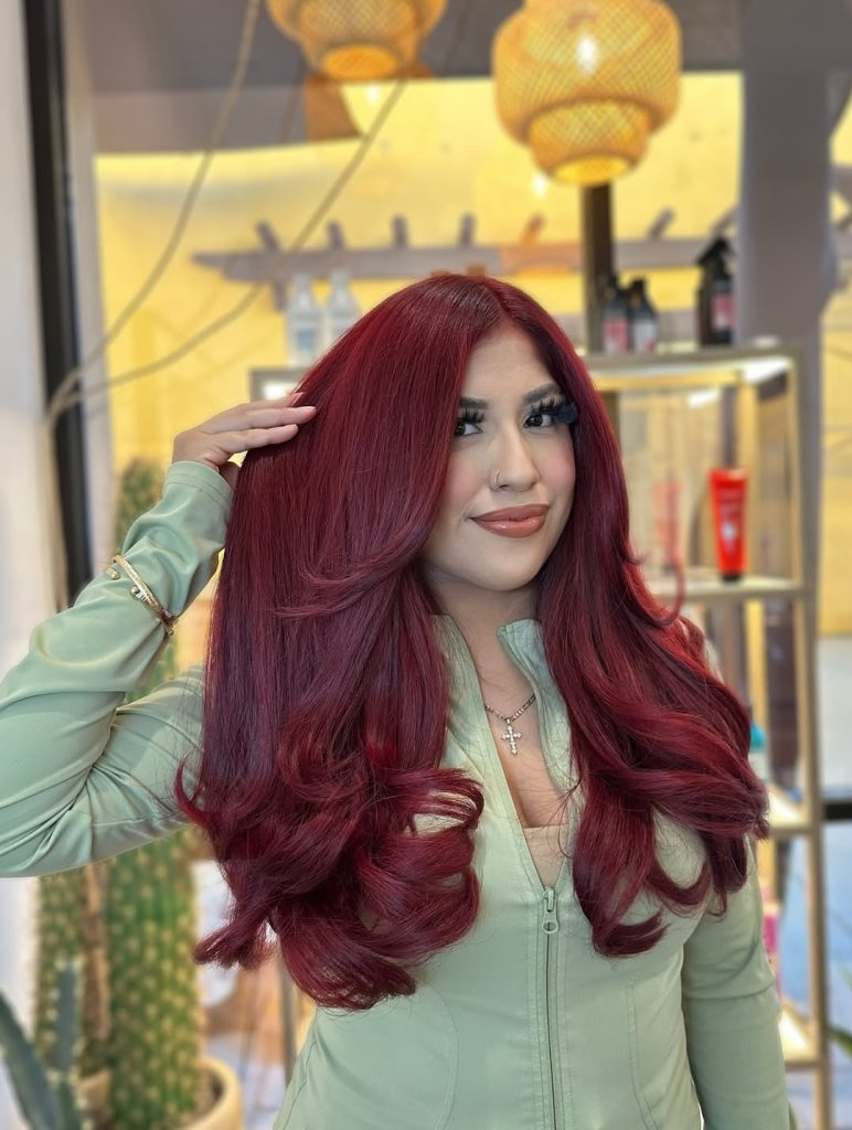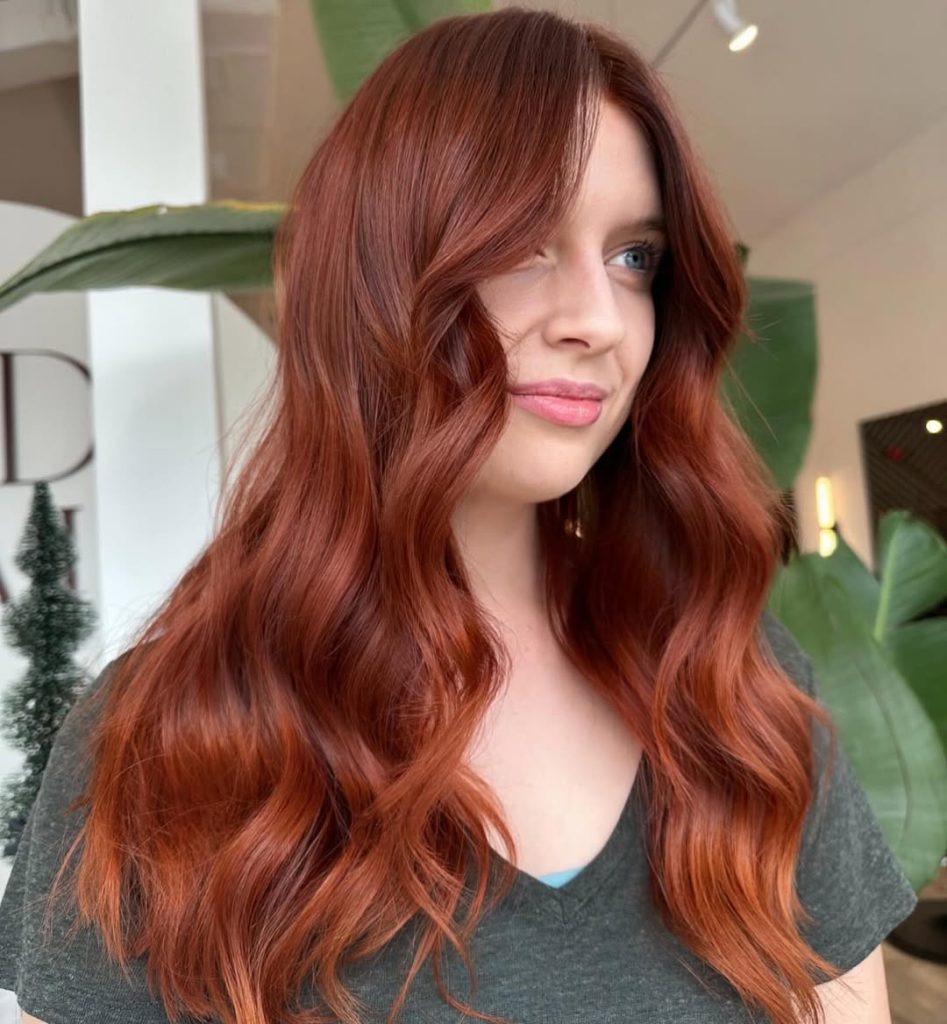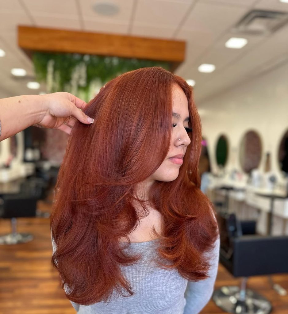 This shade works beautifully for women with long hair who want to push beyond classic auburn or cinnamon tones. Regular gloss treatments help maintain the vibrancy, and the layered cut ensures movement. It’s a color that doesn’t just enhance your style—it transforms your whole presence.