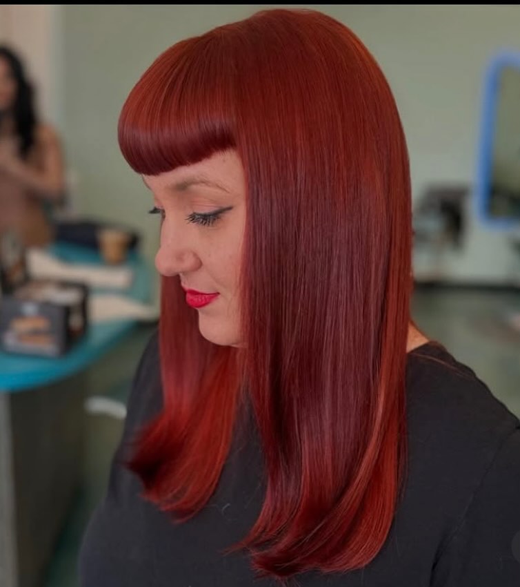 There’s a timeless charm to a sleek bob paired with straight-across bangs, especially when dyed in a rich red. This red hair color 2026 version adds a modern twist with its deep, polished shine that flatters the face and highlights the eyes. It feels bold yet feminine, the kind of style that shows confidence without needing much effort.