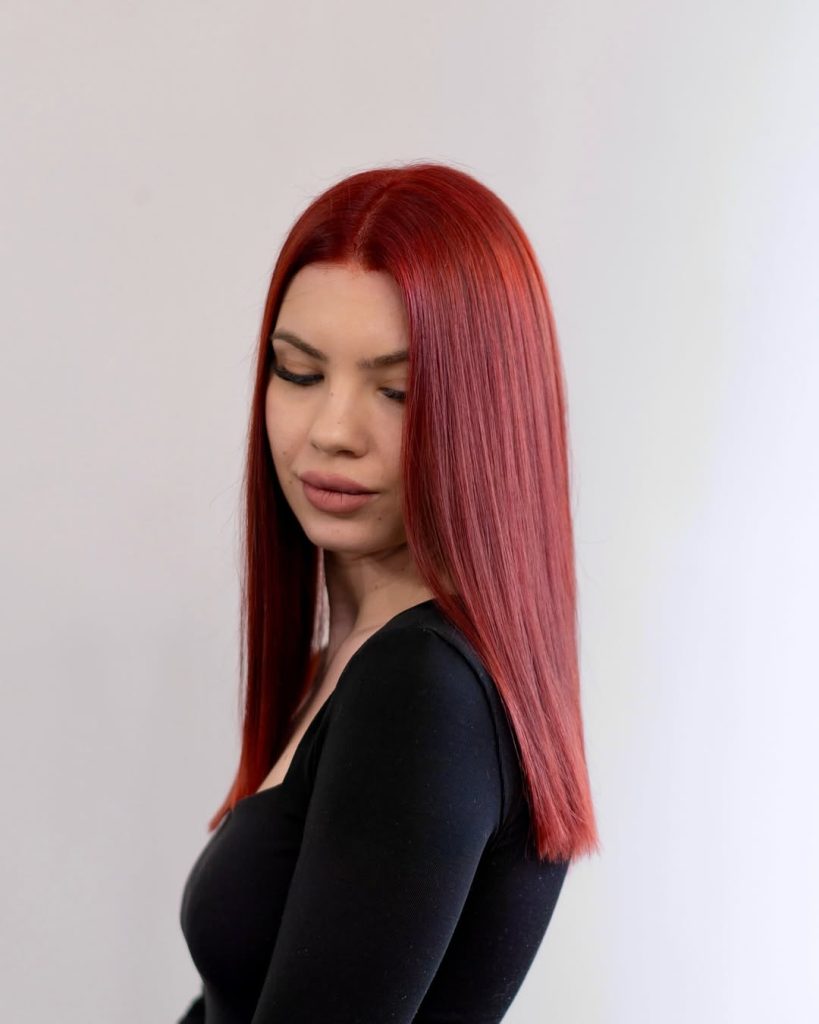 Best suited for women who crave high-impact shades, this look works across different hair textures as long as you’re committed to color care. Regular gloss treatments keep the brightness alive, and highlights can be added for extra depth if desired. It’s a shade that doesn’t whisper—it sings, and it’s perfect for women ready to step into their power.