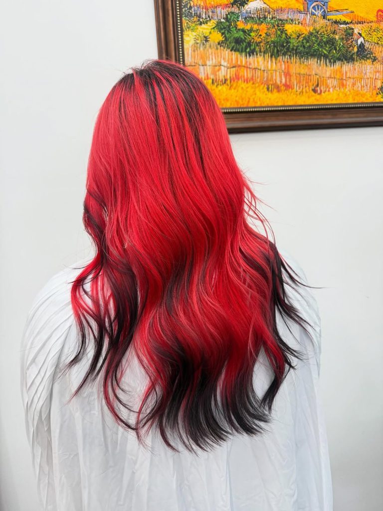Best for women who love standing out, this style thrives on contrast. The black base makes the red appear even brighter, while the loose waves add flow. Maintenance is key here—regular touch-ups keep the transition sharp. It’s an amazing choice for anyone who wants hair that doubles as self-expression.