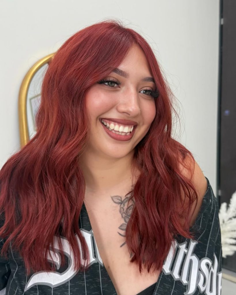 Auburn with cinnamon undertones is one of those timeless shades that always feels sophisticated. Paired with a smooth blowout, the effect is sleek yet voluminous, the kind of look that works whether you’re heading into the office or out for a night with friends. This red hair color 2026 choice blends classic and trendy in the best way.