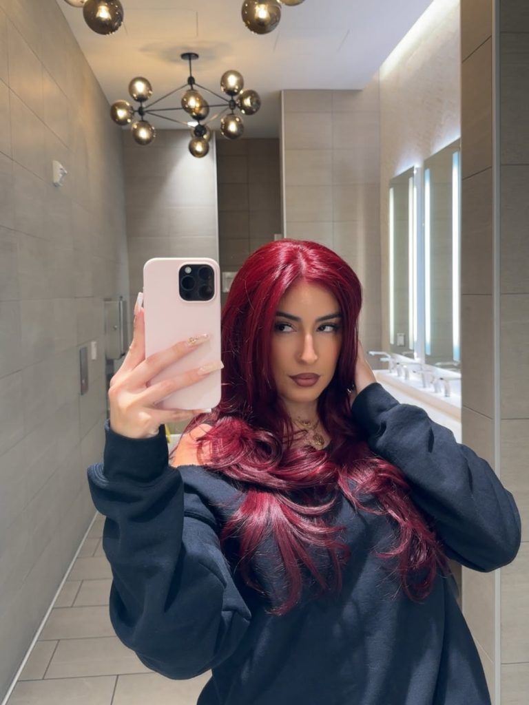 Layered and full of life, this Garnier cherry red is bold without being too overpowering. The long layers keep it soft and feminine, while the saturated red makes it stand out. It’s a beautiful representation of red hair color in 2026, mixing intensity with wearability.