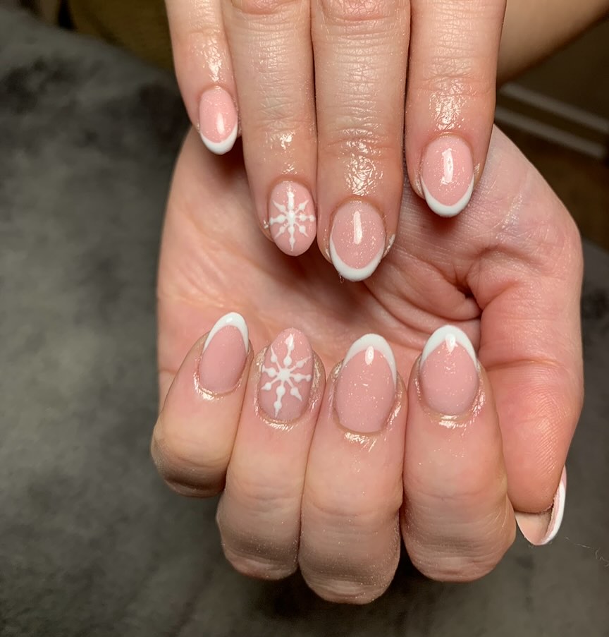 While it might be the epitome of elegance, French tips with an understated snowflake take a seasonal twist for the holidays. The soft pink base with clean white tips kept it classic and polished till the snowflake detail added just a little seasonal sparkle. This is a faint whisper of holiday magic, and it never shouts – hence, it is perfect for the elegant take on Christmas nails.