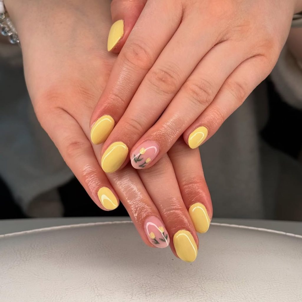 The short oval shape of the nails prevents the yellow from looking too bold, while the miniature flower design is just the right amount of extra detailing. It’s an amazing inspiration design for those who love spring or just simple, fresh fashion.