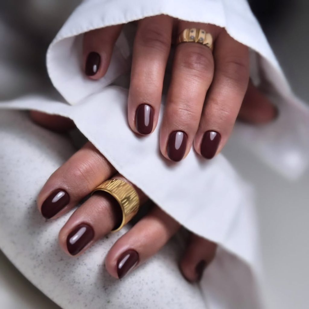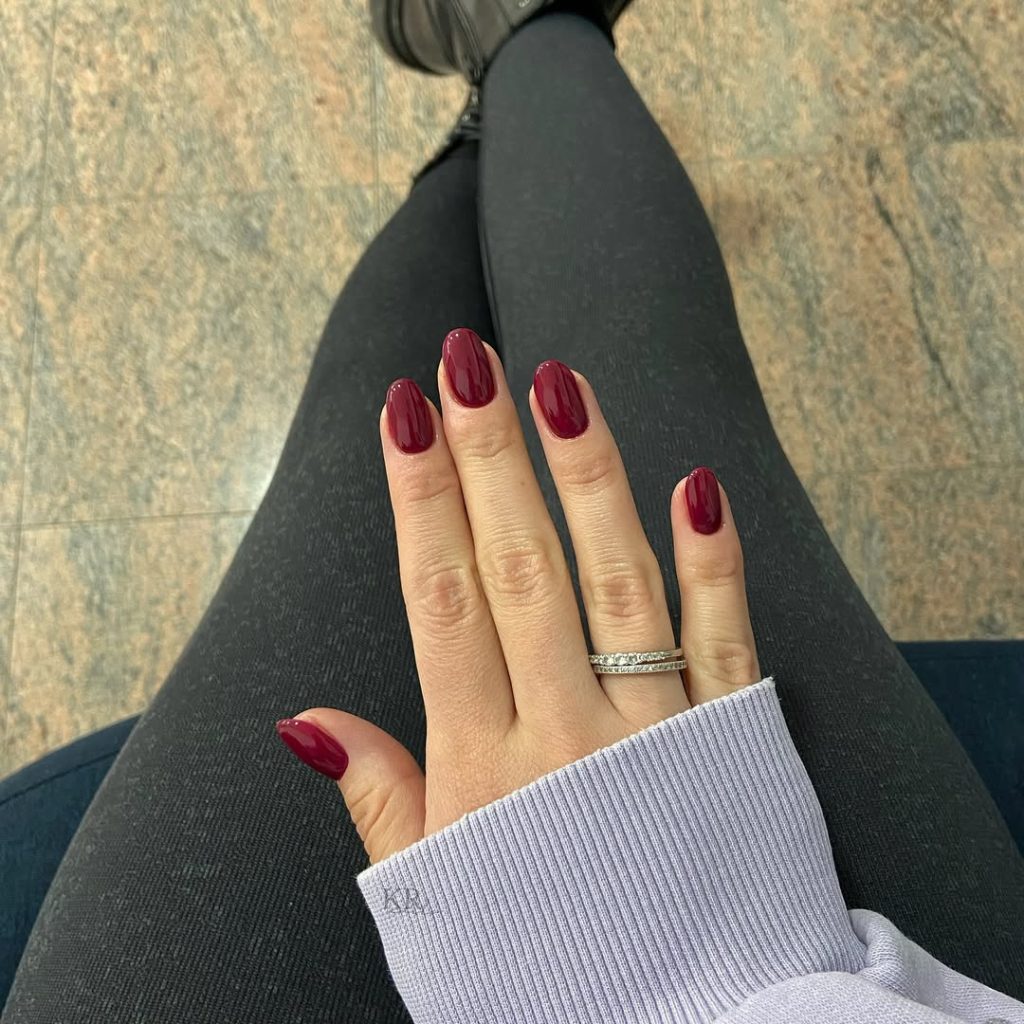 What makes this manicure special is how versatile it is. Burgundy is one of those shades that works beautifully across outfits and seasons—ideal for spring transitions, fall moments, or a classy evening look. On short oval nails, the color becomes even more wearable, combining the design’s simple appeal with something very refined. It’s a great inspo pick if you want elegance without any fuss.