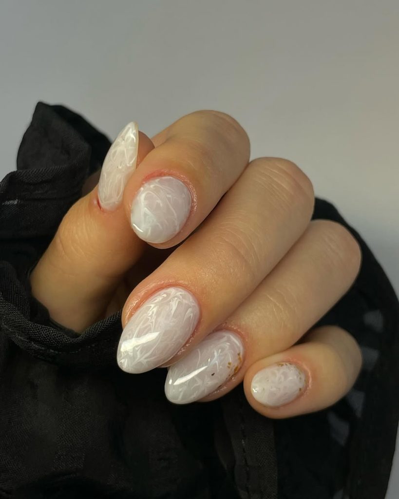 This is the ideal design for those who love natural colors but also want something more than just the basics. The marble design has an elegant shape due to the short oval nails, meaning you can wear the design even for daily activities. The design is ideal for those who love inspiration from spring colors, summer colors, or the elegant acrylic design if you want inspiration from the design.