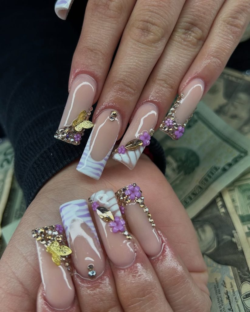 These nails feel like stepping into a blooming spring garden right on your birthday. The delicate florals, tiny playful details, and soft lavender tips create a cheerful, storybook mood that’s light, feminine, and full of personality. It’s the kind of manicure that instantly makes you smile every time you look down at your hands.