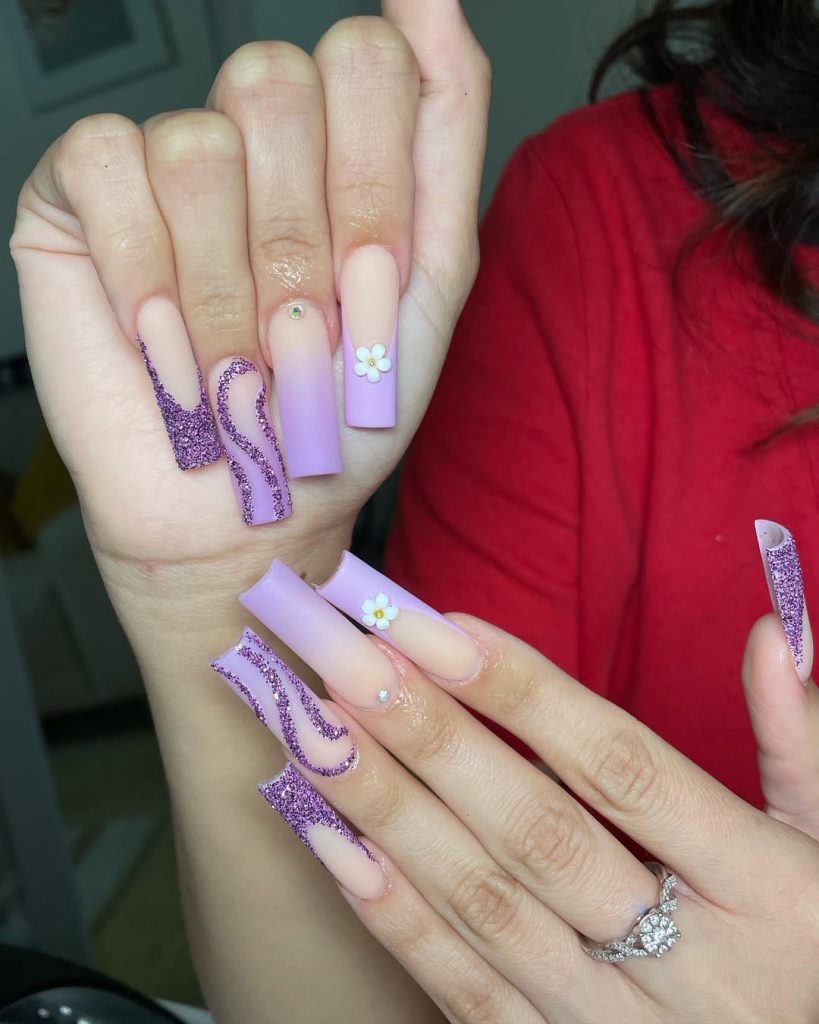 8. Lavender Bloom Birthday Nails