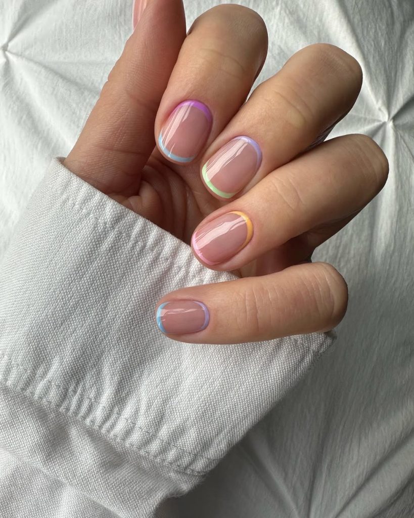 6. Minimal Pastel French Birthday Nails