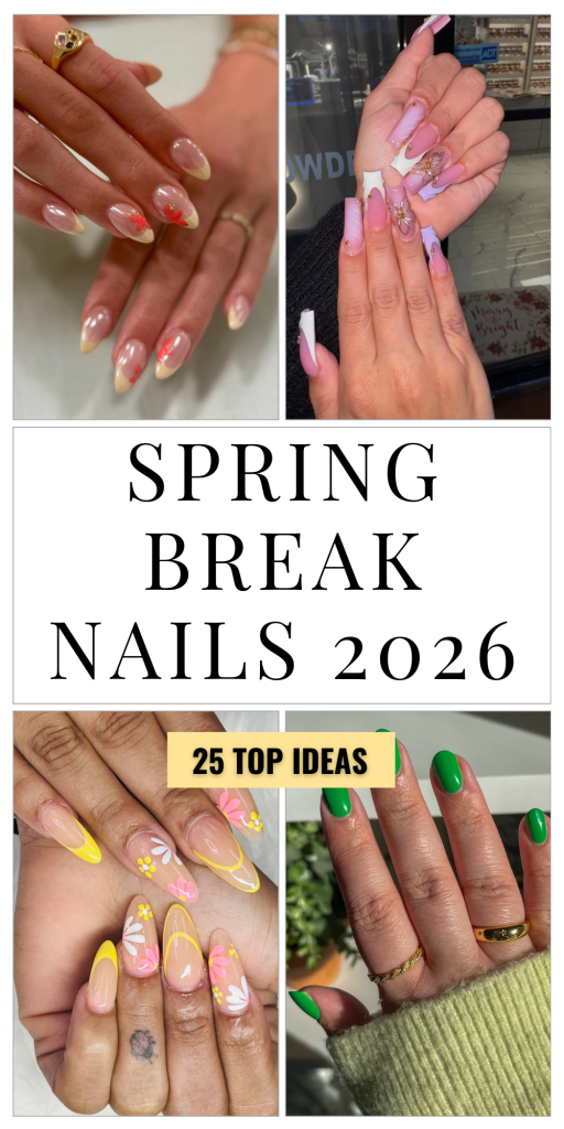 Spring break is the perfect moment to experiment with color, texture, and design, and these nail ideas for 2026 prove that you don’t have to choose between fun and elegance. From adorable floral details to clean French tips and vibrant color combinations, each look captures the carefree spirit of spring. Choose the styles that reflect your mood, and let your nails set the tone for a confident, stylish, and unforgettable spring break.