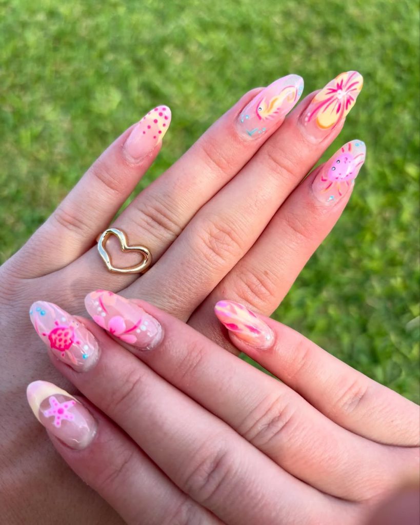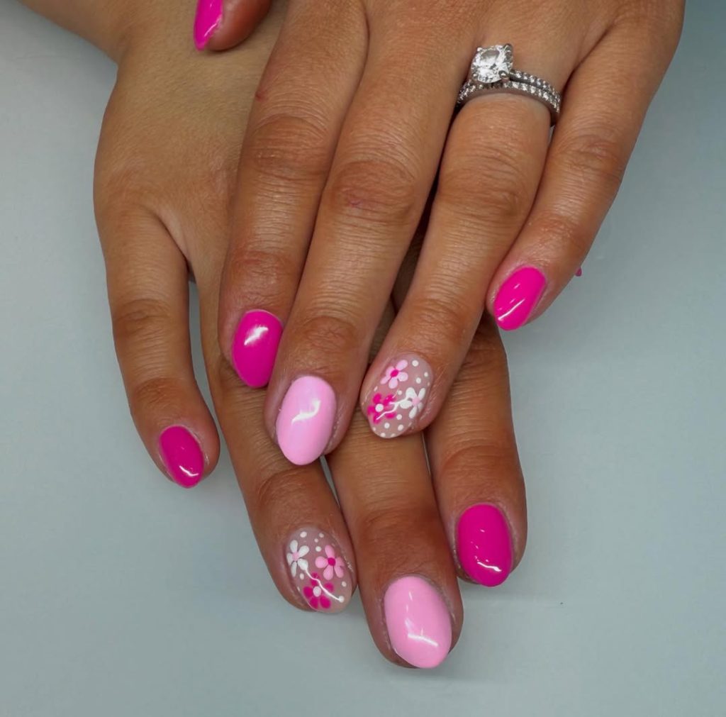 6. Playful Pink Spring Break Nails with Mini Floral Accents