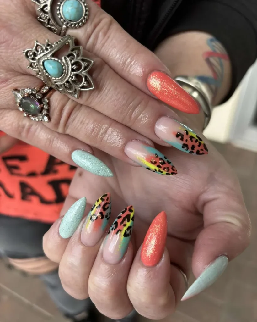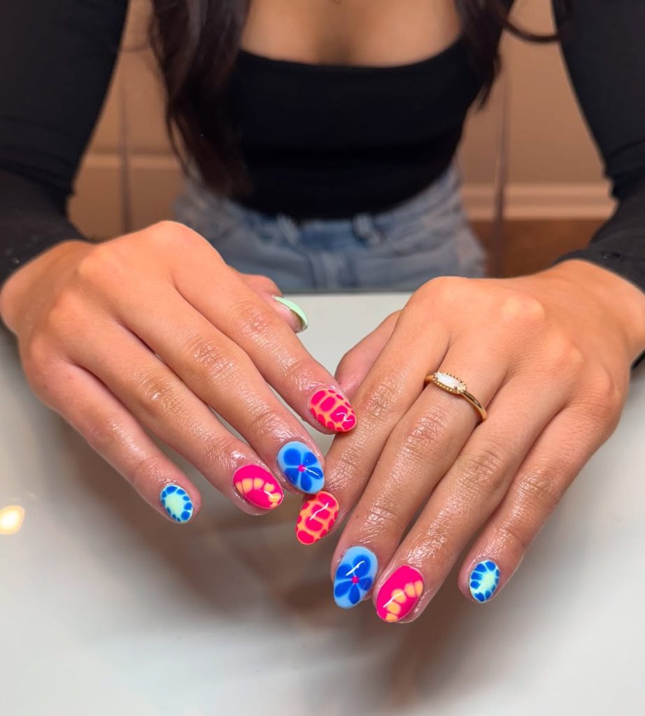 7. Artistic Spring Break Nails with Bold Color Mix
