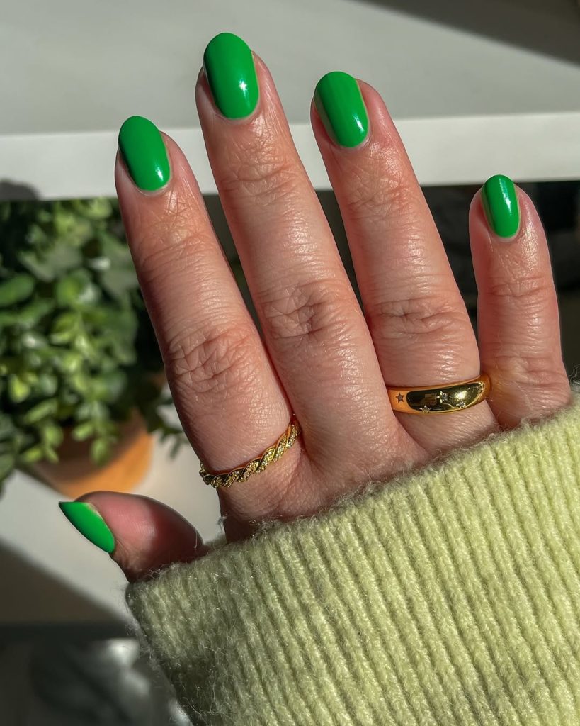 22. Bright green spring break nails feature a clean, minimal style.