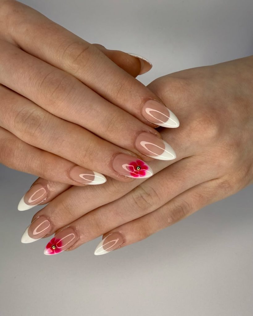 4. Elegant Spring Break French Tip with Floral Accent