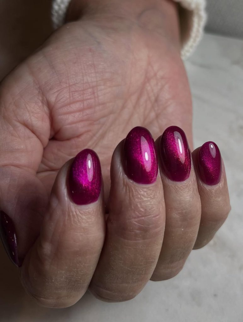 11. Raspberry Wine Cat Eye Nails