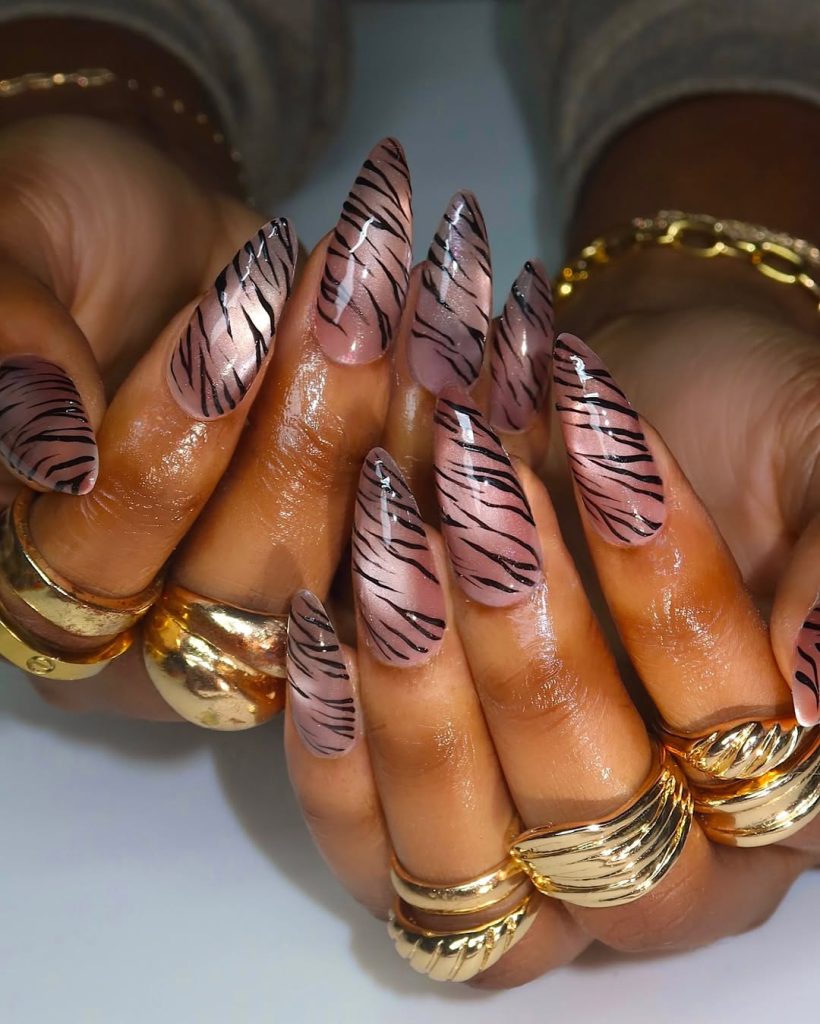 This look is ideal for almond-shaped and medium-length nails, especially if you enjoy designs that balance simple and bold. It’s perfect for women who like minimal art with character. The neutral base makes it easy to wear day to day, while the graphic pattern keeps it from feeling boring. A wonderful option if you want Inspo that feels stylish and confident for 2026.