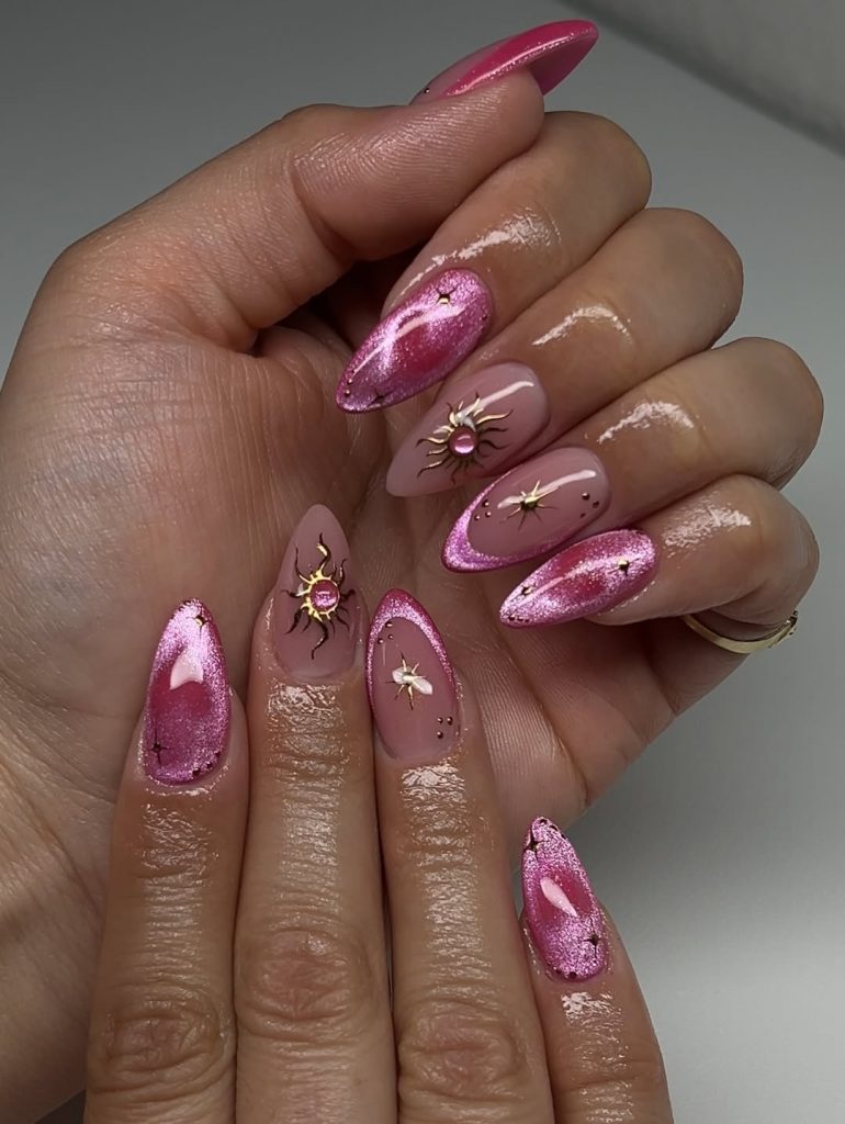 7. Pink Cat Eye Nails with Celestial Accents