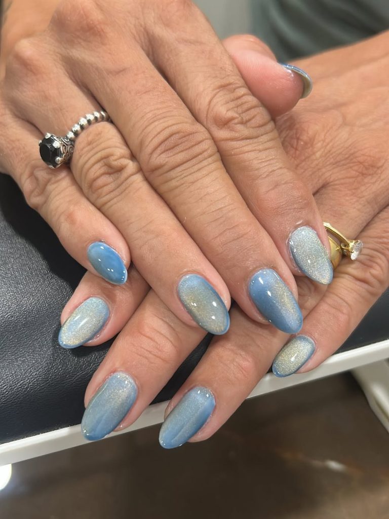 These nails feel calm, fresh, and effortlessly elegant. The soft blue shimmer has a cooling effect, almost like a breath of fresh air for your hands. It’s understated but still intriguing, making it a perfect everyday choice when you want something light, clean, and modern.
