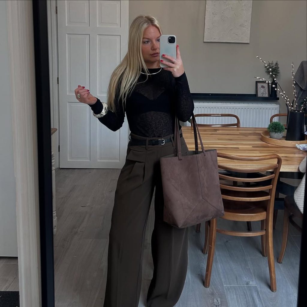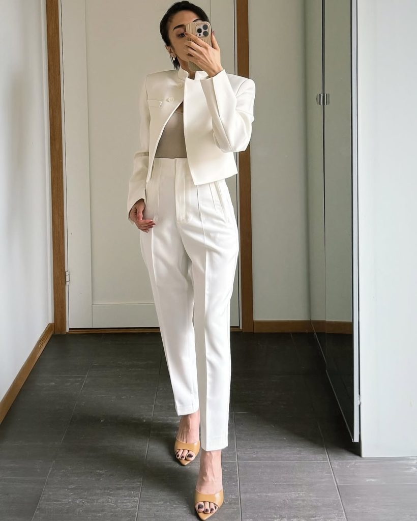 This look transitions seamlessly from daytime meetings to evening dinners, especially in urban settings. It carries a quiet power that works well for gallery openings, business-casual events, or stylish city walks. To personalize, add a bright lip or a pink manicure. Avoid layering too much—this outfit’s strength lies in its clean lines and confident simplicity.