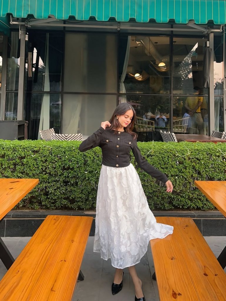Perfect for café dates, cultural outings, or refined daytime events, this outfit balances elegance and ease. It suits those who love classic proportions with a romantic touch. Avoid oversized bags to keep the look light and polished.