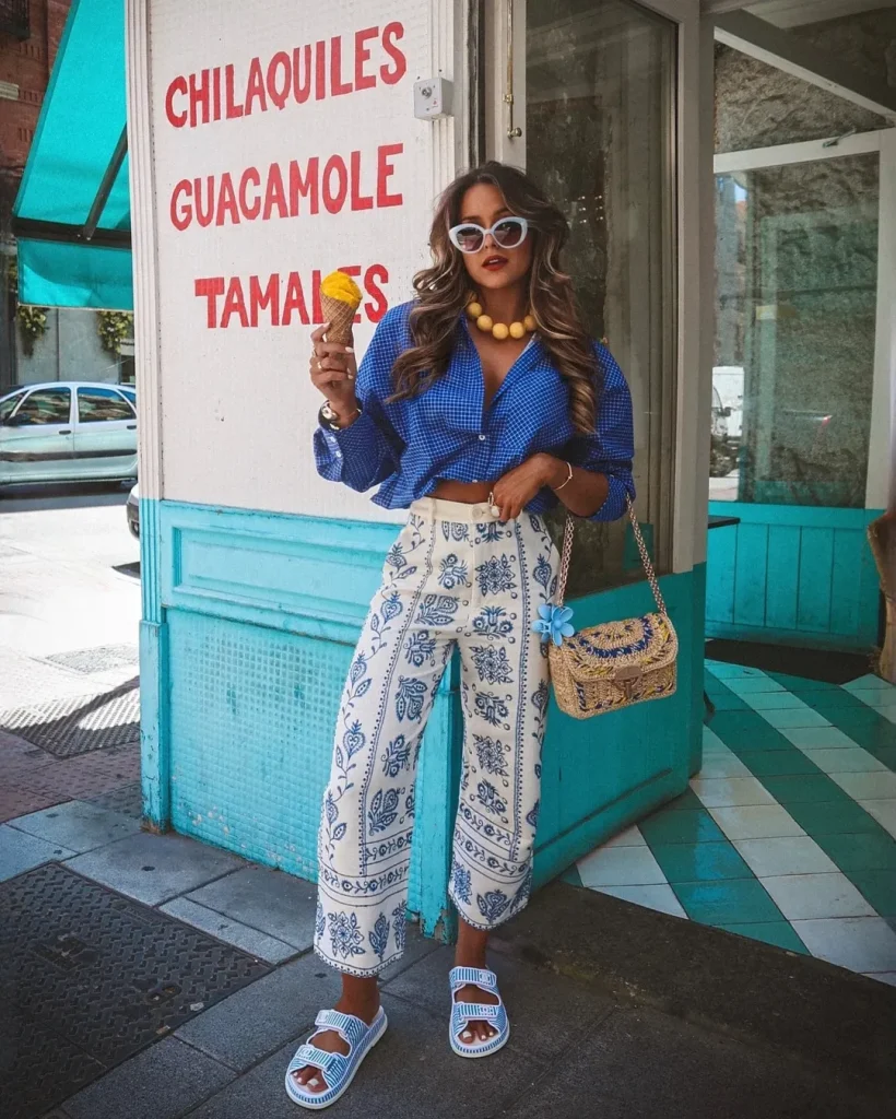 Sometimes summer style is about having fun with contrast—and this outfit does exactly that. It’s vibrant, slightly retro, and impossible to ignore.