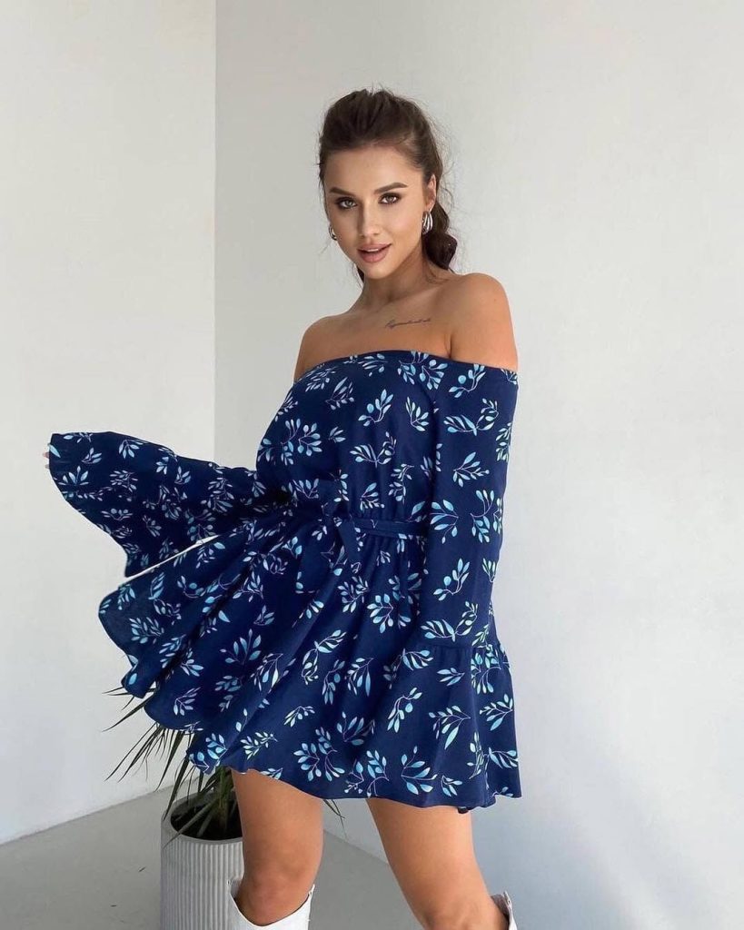 Is there anything more captivating than a dress that moves with you like a summer breeze? This navy off-shoulder mini captures that exact feeling—light, fluid, and quietly confident.