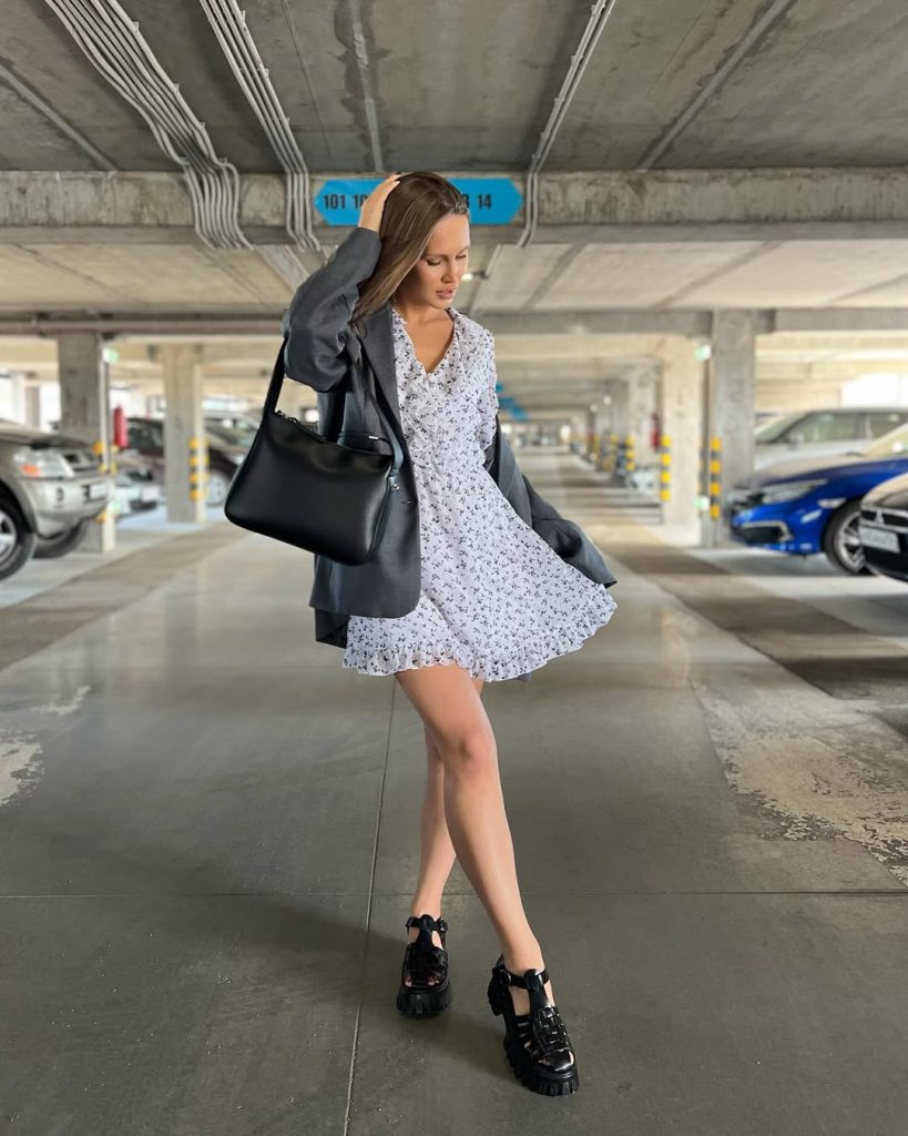 A breezy mini dress paired with a structured blazer creates a Modest yet modern Aesthetic that feels polished without losing its Casual charm.