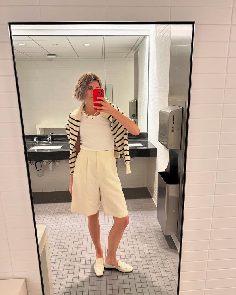 This combination is where Work chic meets bold Ideas. Shorts in the office? Absolutely—when tailored right. This look suits petite women especially well, elongating the legs while keeping proportions sharp. Add sheer tights for more conservative spaces or swap heels for slingbacks. Avoid overly casual fabrics; structure is key here. It is ideal for client meetings in creative industries or upscale Corporate environments that embrace modern dress codes.