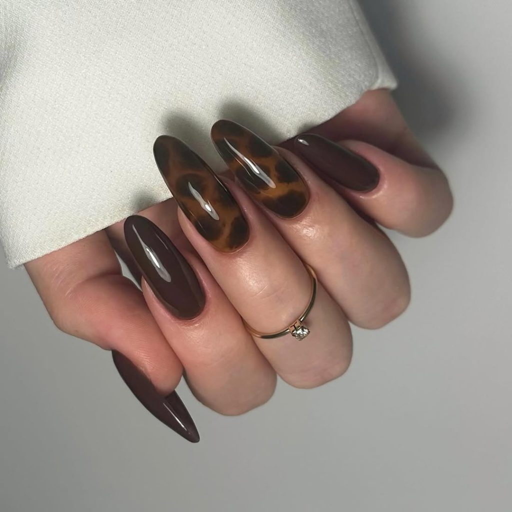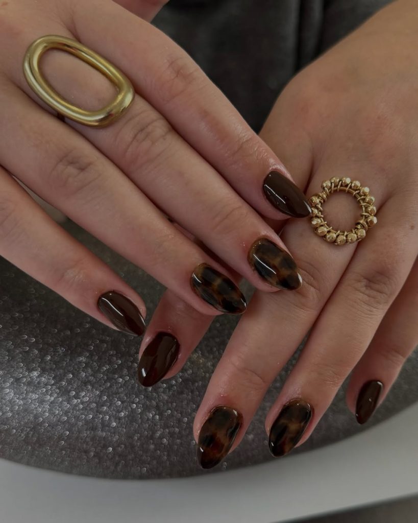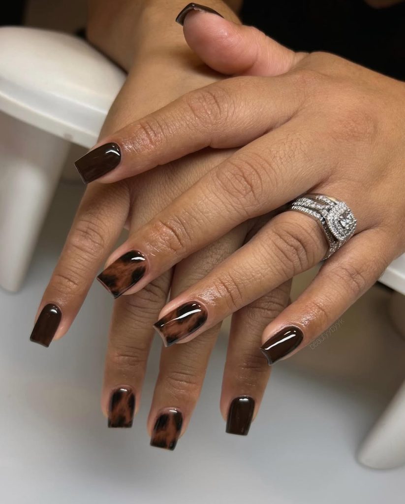 5. Deep Brown Tortoise Nails with Gloss Finish