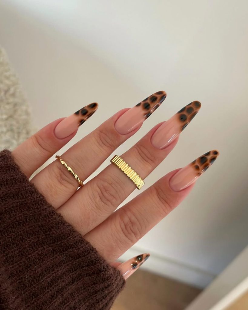 Best for almond or stiletto nails, this design works well on longer lengths to fully showcase the tortoise pattern. The key to its radiance lies in layering sheer caramel and chocolate polishes for that authentic depth. Finish with a gel topcoat for durability and sheen.
