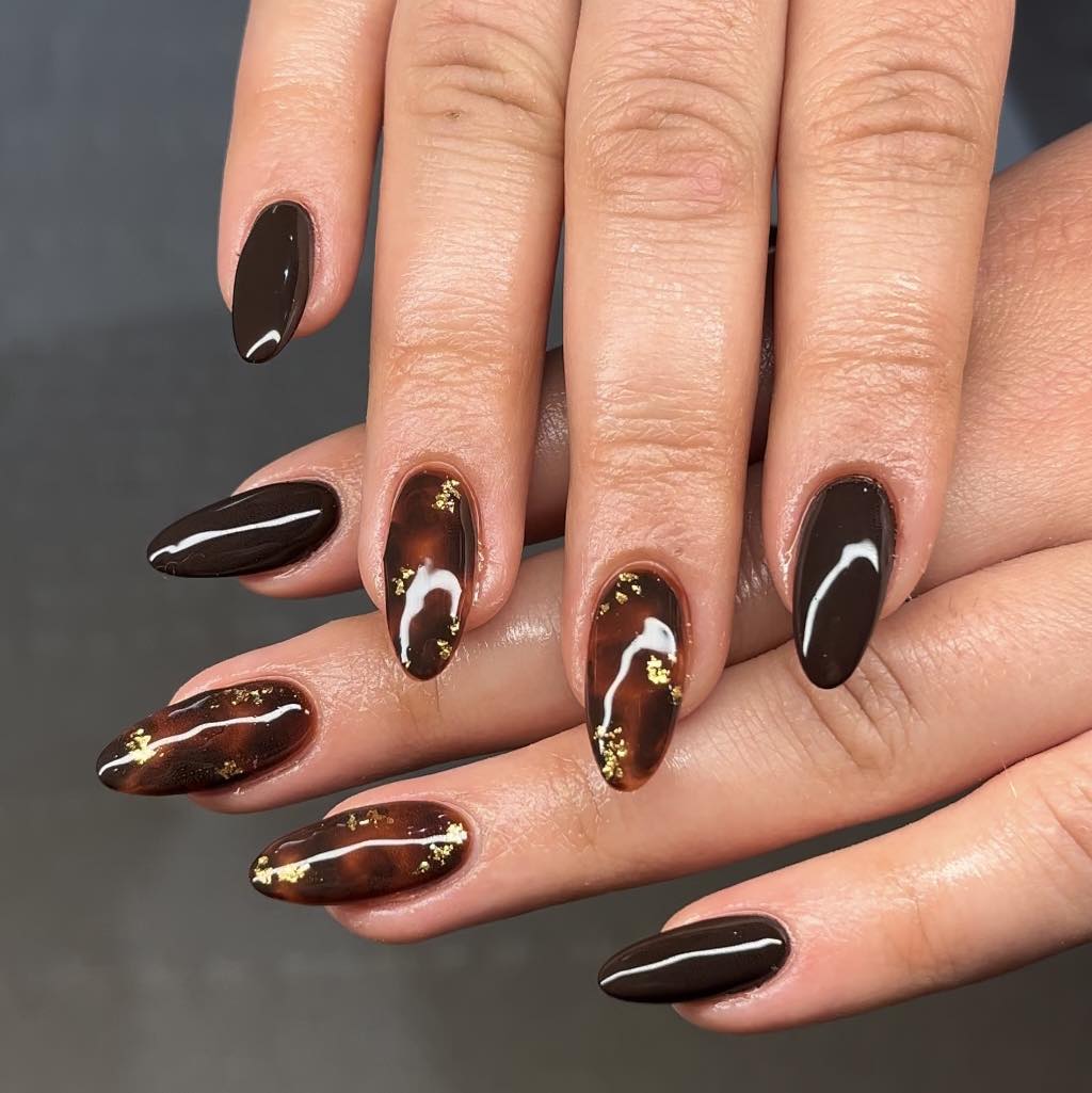 22. Gold-Flecked Deep Brown Tortoise Nails