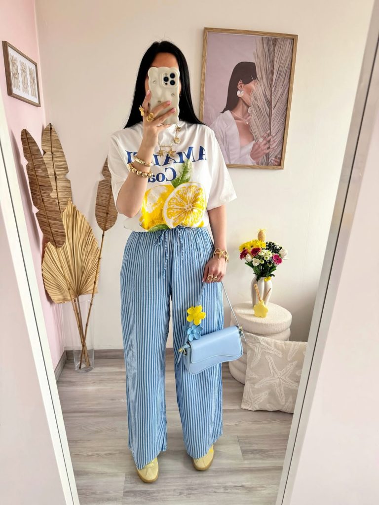 A striped wrap jumpsuit delivers comfort and sophistication in equal measure. It’s flattering, relaxed, and quietly confident—an outfit that doesn’t compete with the setting.