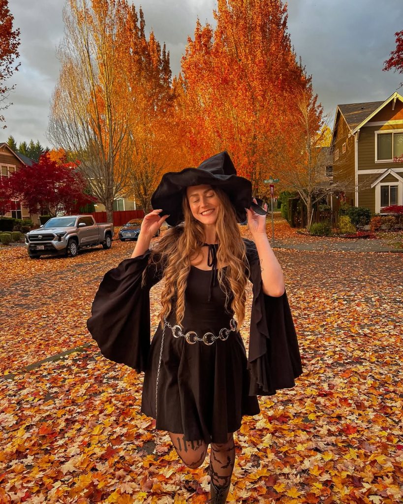 This is a great option for women who want a witchy aesthetic without too much structure. The gentle drape is flattering on many body shapes and gives you that easy, comfy confidence. What makes this look special is how it pairs softness with personality—you can lean into autumn vibes with boots or embrace spring and summer energy with lighter accessories.