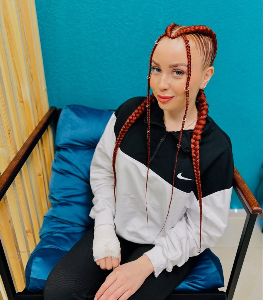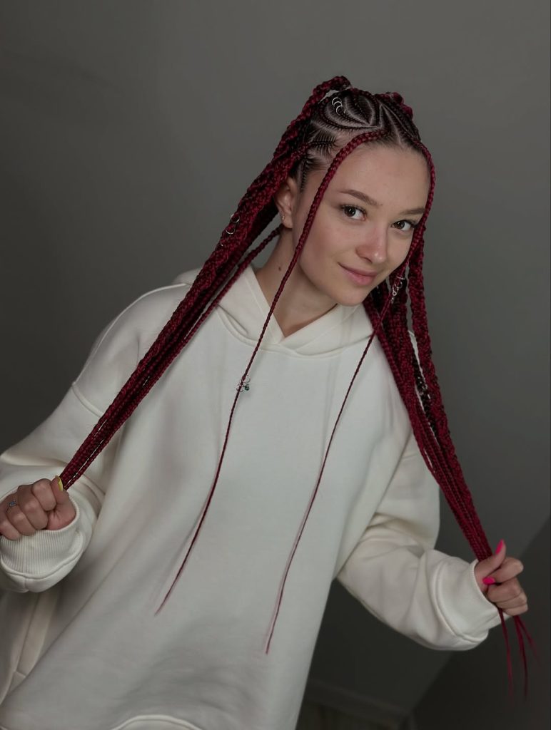The beauty here is in the attitude it gives off—strong yet playful. This style is fantastic for women with fine to medium hair who want braids that feel lightweight and easy to manage. Plus, the red shade adds instant warmth to your complexion.