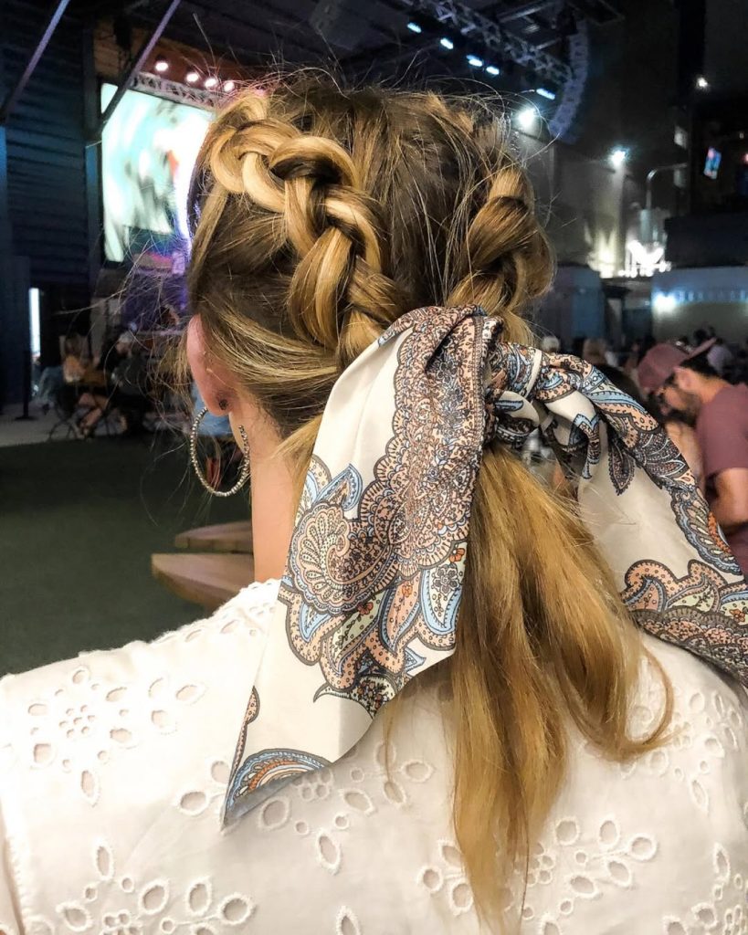 Sometimes the cutest styles are the most simple—like this side Dutch braid finished with a printed scarf. It feels charming and feminine, with just enough detail to make an everyday ponytail feel special.