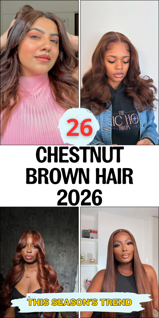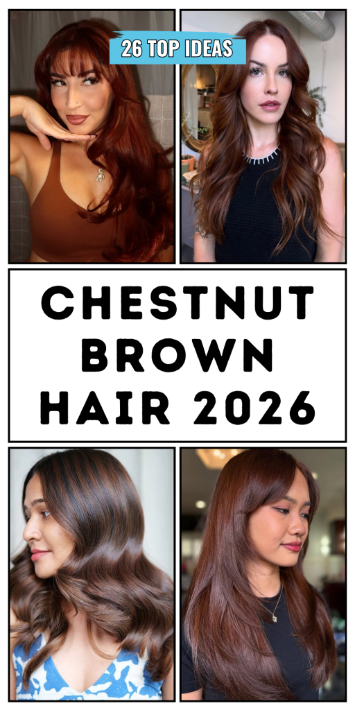 Chestnut brown hair has become one of the most beloved shades for 2026, and it’s easy to understand why. This rich, versatile color brings together warmth and depth, making it a perfect choice for women who want to refresh their look without going too dramatic. Whether you’re drawn to soft layers, voluminous curls, or sleek straight styles, chestnut brown adapts beautifully to every cut and texture. It’s a shade that feels timeless yet modern, offering a radiant glow that enhances natural beauty. Get ready to be inspired by these 26 stunning ideas that will make you fall in love with chestnut all over again.
