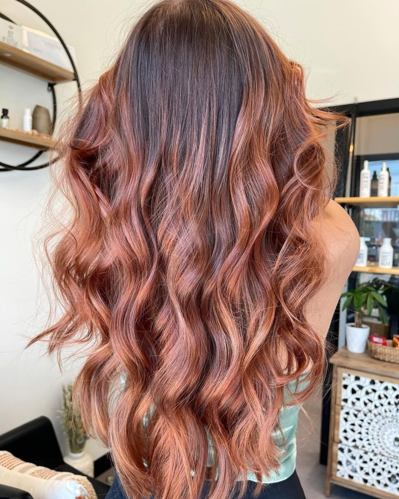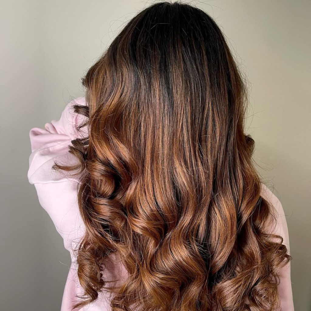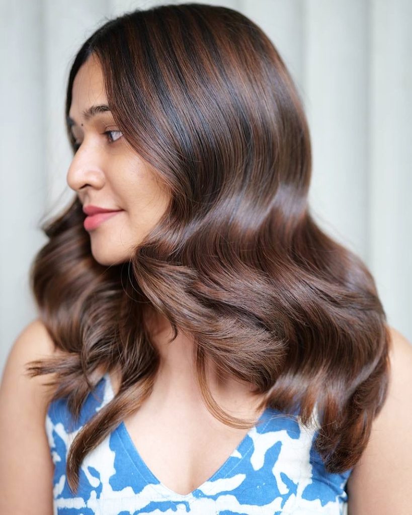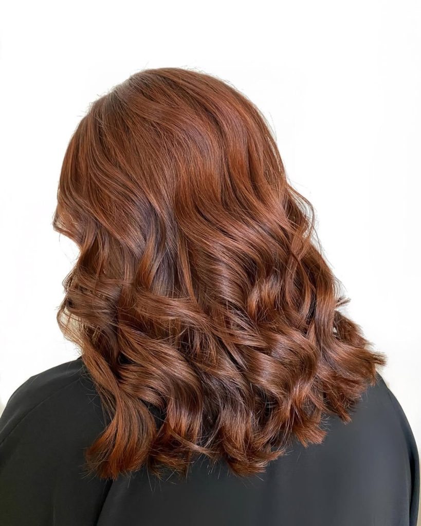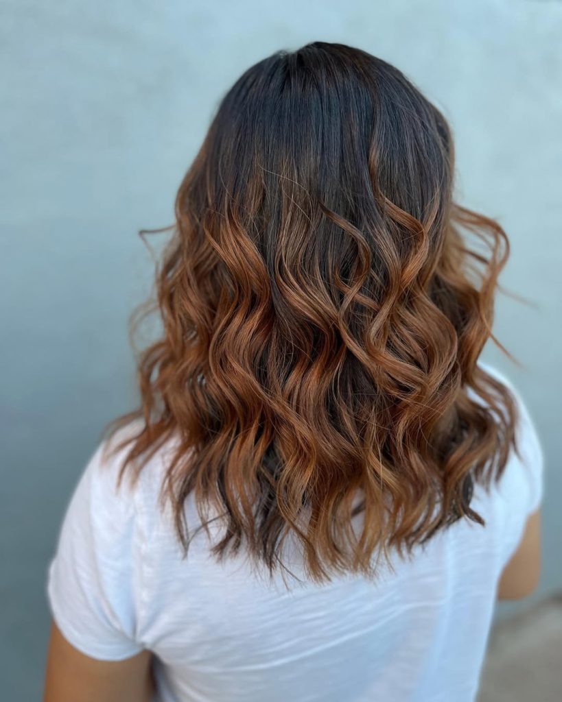 Romantic and playful, this style blends chestnut brown with caramel highlights to create a multi-dimensional effect that feels soft and radiant. The waves look like they were painted by sunlight, adding a youthful brightness without losing the richness of the base color. It’s the kind of hairstyle that feels lighthearted and fun but still carries a chic, grown-up sensibility. Think of it as the perfect balance between natural and polished.