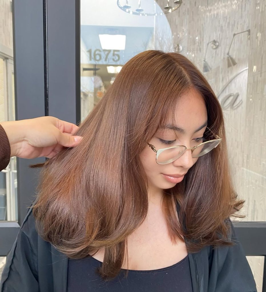 This chestnut style with caramel balayage is the ultimate blend of richness and brightness. The caramel pieces flow naturally through the darker base, adding depth and dimension without feeling overdone. It’s casual, chic, and carries a sense of effortless style—the kind of look that works for everyday wear but still feels elevated enough for special occasions.