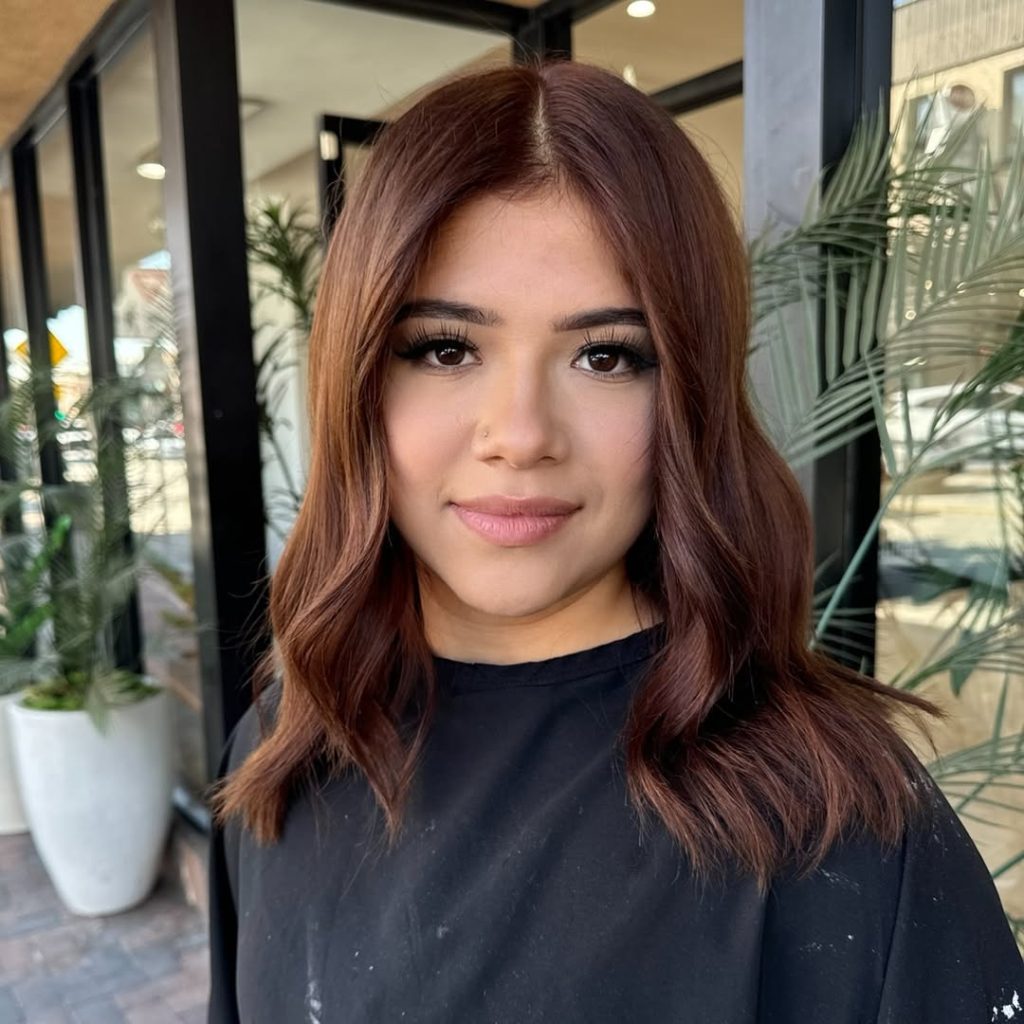 There’s nothing more powerful than sleek, straight hair that shines with confidence. This chestnut look paired with length creates a commanding presence—smooth, rich, and full of elegance. The straight finish feels modern yet timeless, a perfect example of how simplicity often makes the biggest impact. It’s the kind of style that feels instantly put-together no matter the occasion.