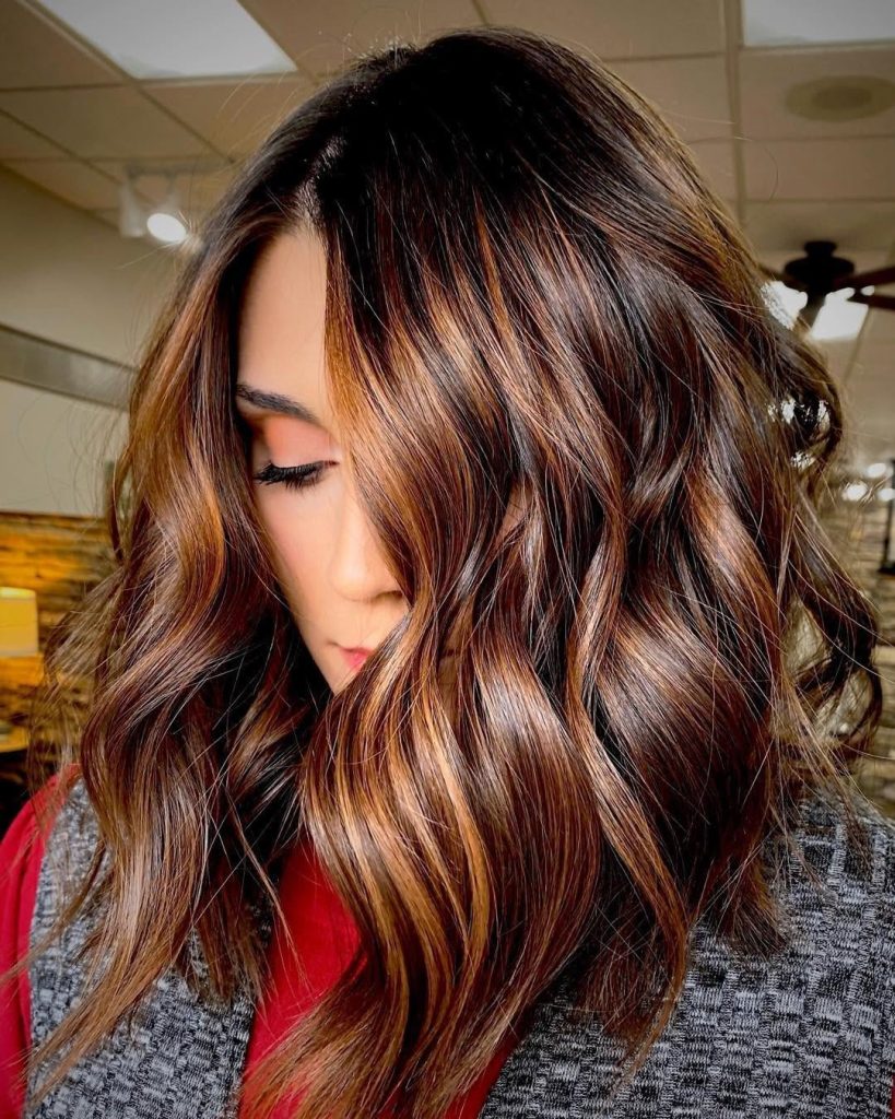 5. Chestnut with Caramel Highlights Waves