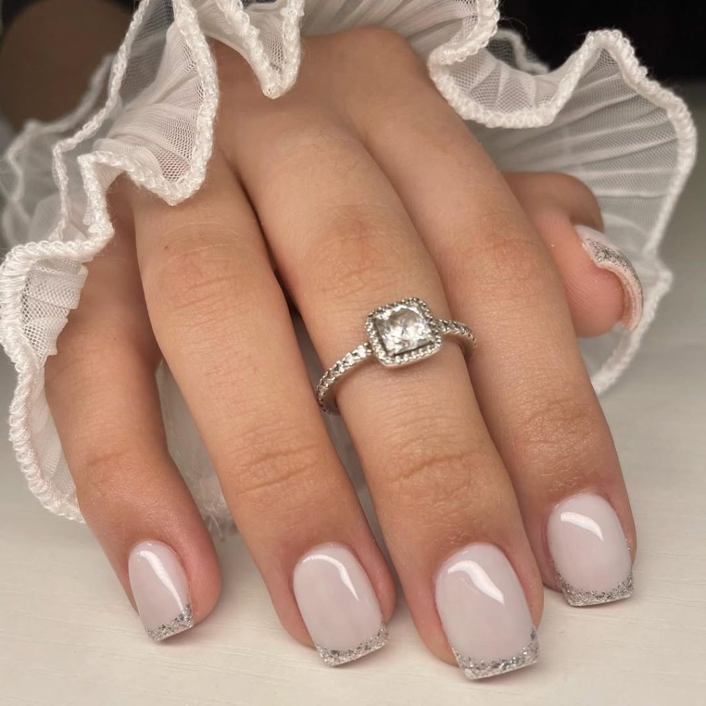 19. Elegant White Glitter Tip Nails