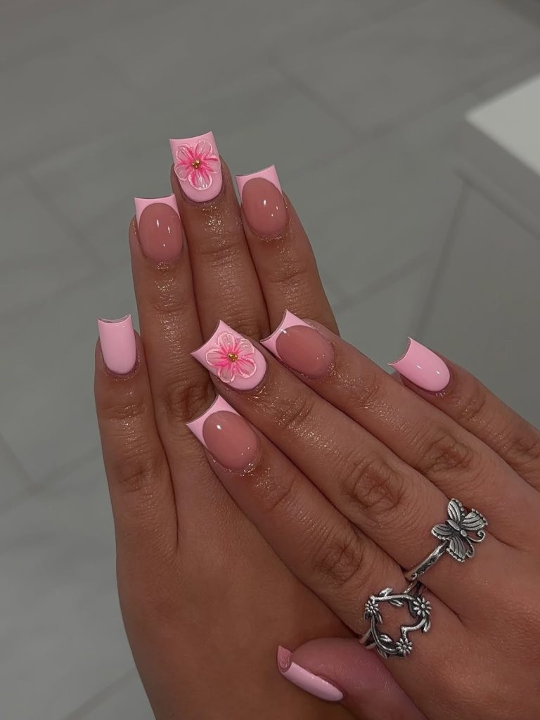 Square pink nails like these are incredibly versatile and flattering for many hand shapes. The short length makes them practical for everyday life, while the subtle flower art keeps the manicure from looking too plain. If you love square pinks with charms or soft Designs that feel cheerful and romantic, this look is a beautiful choice for spring and summer.