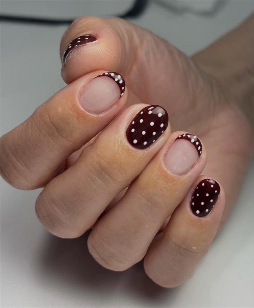 9. Burgundy Polka Dot Short Nails