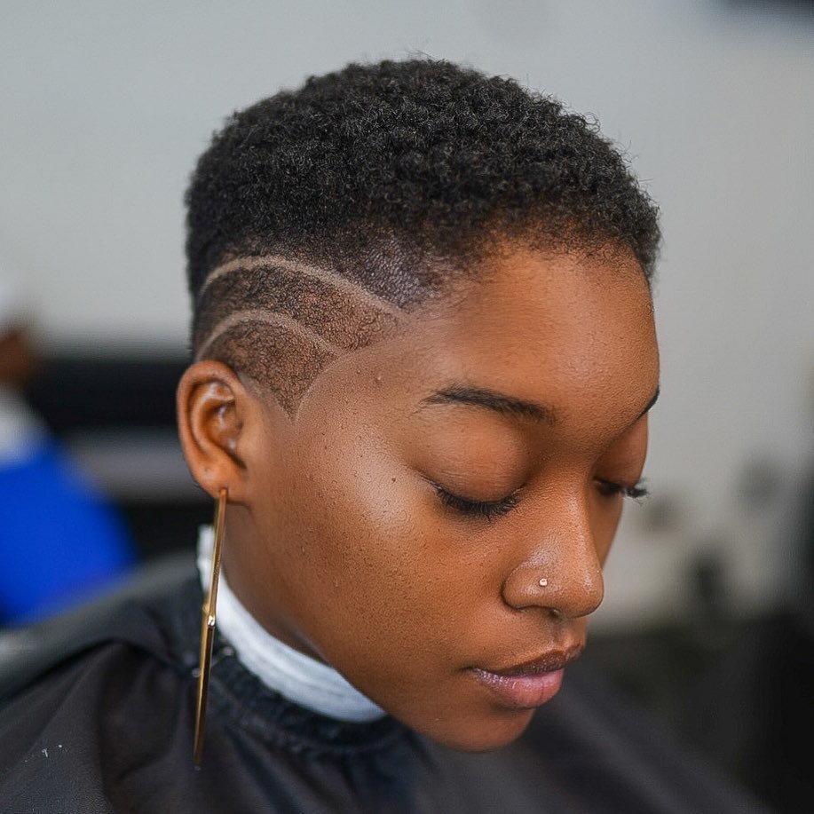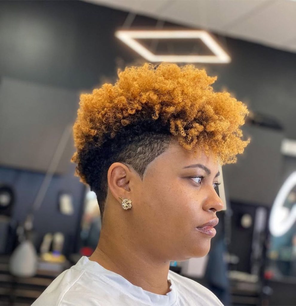 This look is all about personality and fearless style. The ultra-short length and natural curly texture create a bold, expressive silhouette, while the shaved design detail adds a unique, artistic edge. It’s modern, fresh, and unapologetically confident—the kind of haircut that truly stands out.
