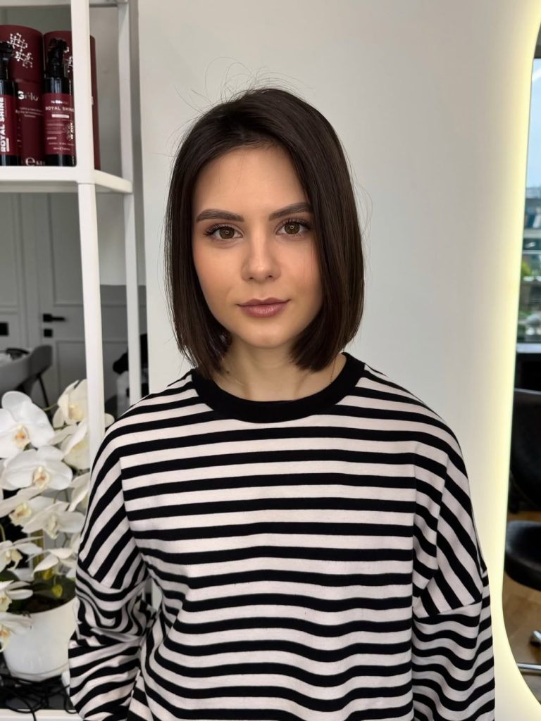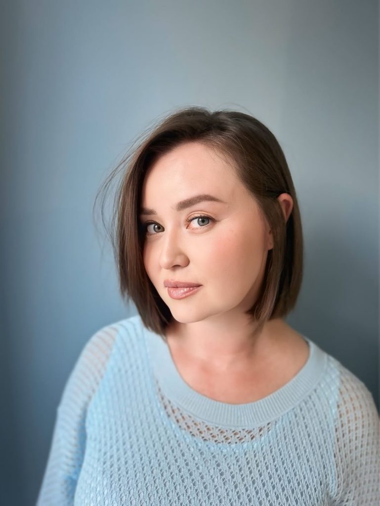 This cut is ideal for women with straight or slightly thinning hair, as it creates a fuller, more structured shape. It’s also a wonderful option for a Round face because the straight lines help elongate your features. A quick blow-dry and smoothing serum are all it takes, making it an effortless, everyday favorite.
