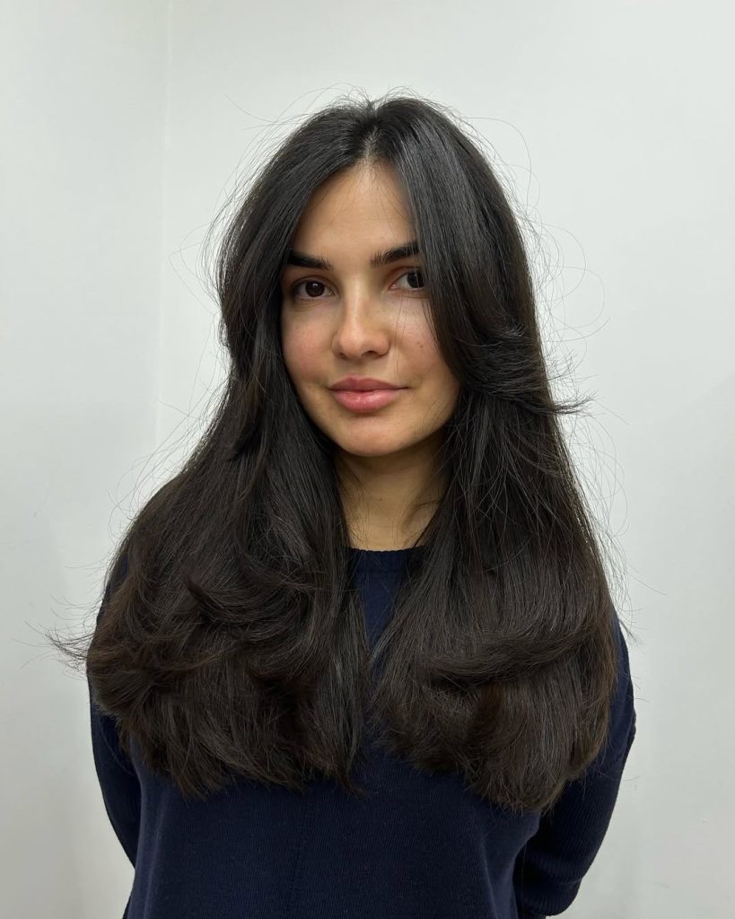 If you have thick or medium hair, this cut helps remove heaviness while maintaining volume. It’s ideal for women who want length without a bulky feel. Blow-dry with a round brush or add loose waves for extra dimension. The result is soft, dynamic, and effortlessly stylish.