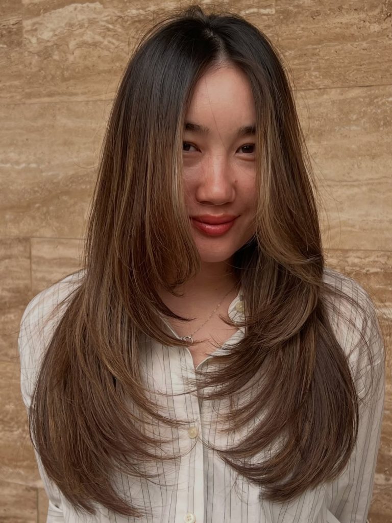 This is the kind of hairstyle that feels quietly beautiful—nothing too styled, just naturally full and soft. The Long Layers add movement and dimension while keeping that gentle, flowing shape. It’s relaxed and feminine, like your hair is doing exactly what it’s supposed to without any effort.