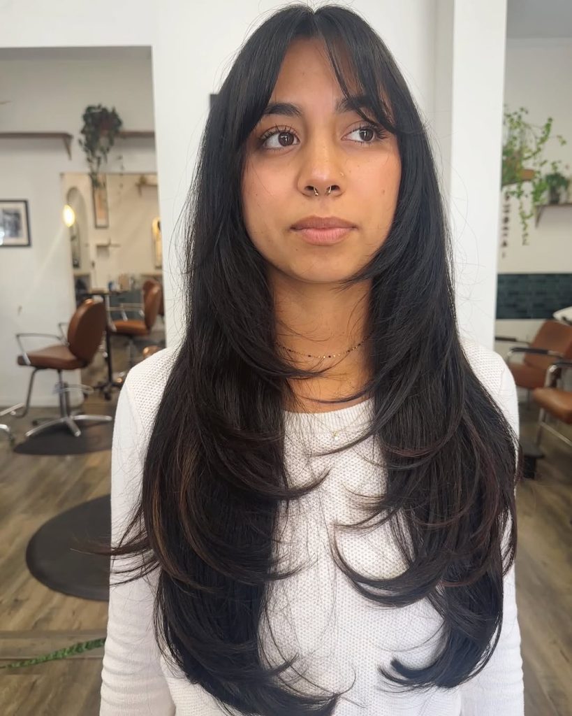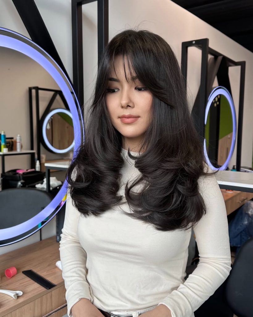 This style is all about movement and softness. The Long Layers cascade beautifully, creating that flowing, almost weightless effect that feels incredibly feminine. It’s the kind of haircut that makes your hair look alive—like it’s moving even when you’re standing still.