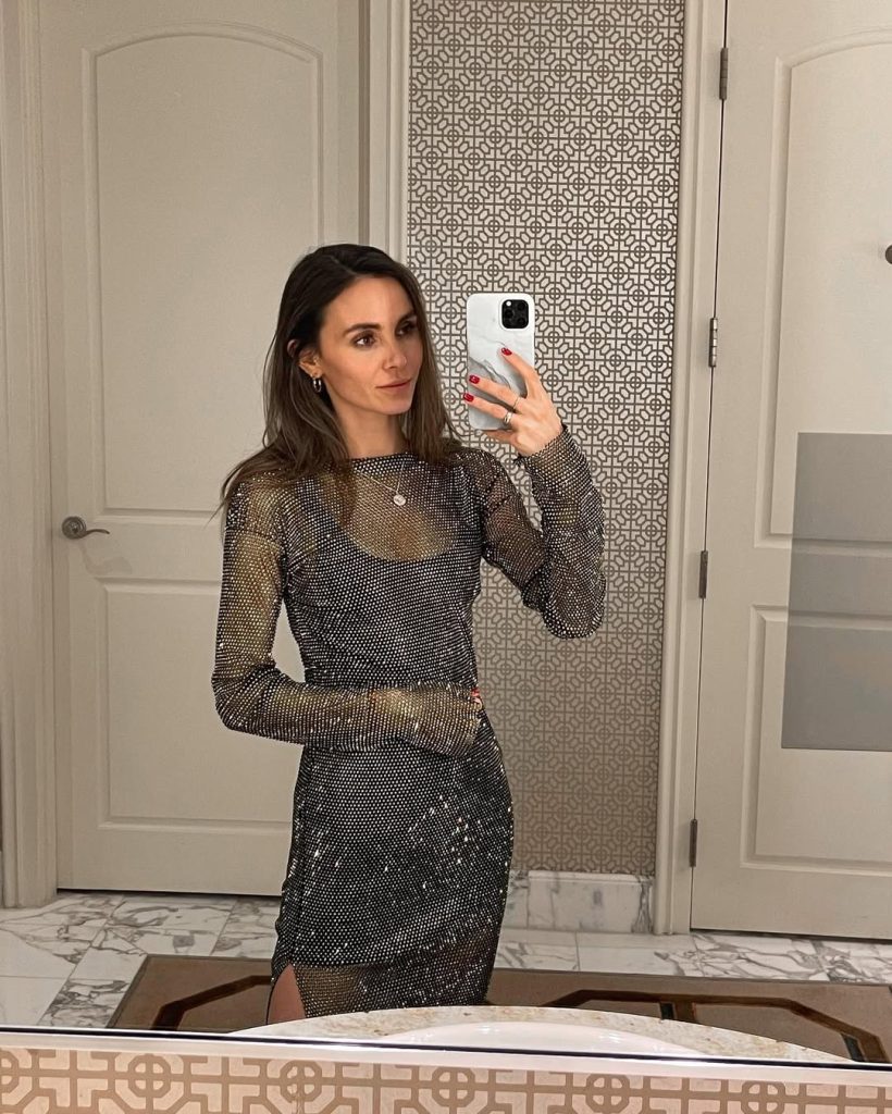 This pick works beautifully for a date night in a trendy restaurant or even Valentine’s. If it’s cold, pair it with a long wool coat and sheer tights. Avoid clashing colors—stick to gold or nude accessories for harmony. The dress does all the talking.