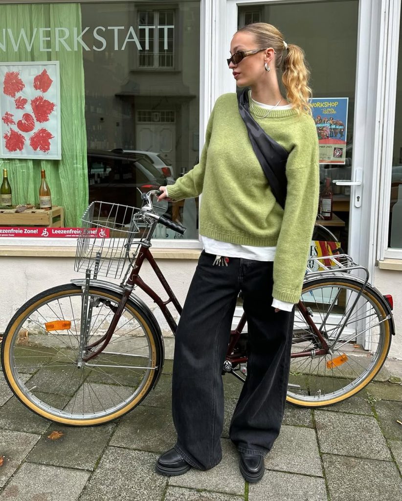 This is effortless Europe-inspired inspo, reminiscent of quieter neighborhoods in Italy or Amsterdam. To elevate it, add a structured trench or leather belt. Skip heavy outerwear—this style thrives in transitional Cold weather is when layering matters more than bulk.